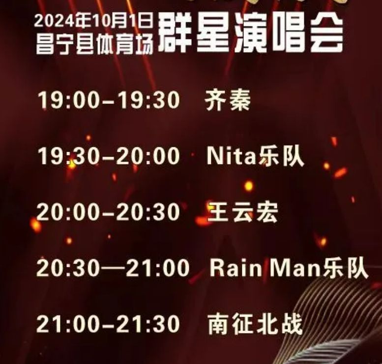 2024年国庆昌宁县齐秦群星演唱会什么时候出场
